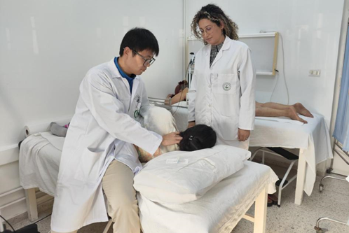 我2023年毕业于上海中医药大学针灸推拿专业,作为突尼斯华人,通过了当地卫生部的批准,2024年7月进入了突尼斯马尔萨Mongi-Slim医院中医针灸中心实习。这是自1973年起组建的第一批中国援外医疗队,现已有52年历史,去年正值第28批援突中国医疗队,针灸中心仅有包括队长在内的5位中国医生。